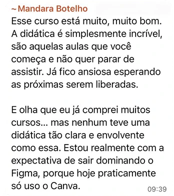 Por muito tempo, acreditei que meu maior obstáculo era a falta de criatividade, quando na verdade o que me faltava era um método claro. O FigmaLab nasceu da organização do meu próprio processo criativo, validado em projetos reais que hoje me permitem faturar 5 dígitos mensais com design para social media. Aqui, eu te ensino a pensar como designer estrategista, dominando a técnica para criar com total autoria e segurança.